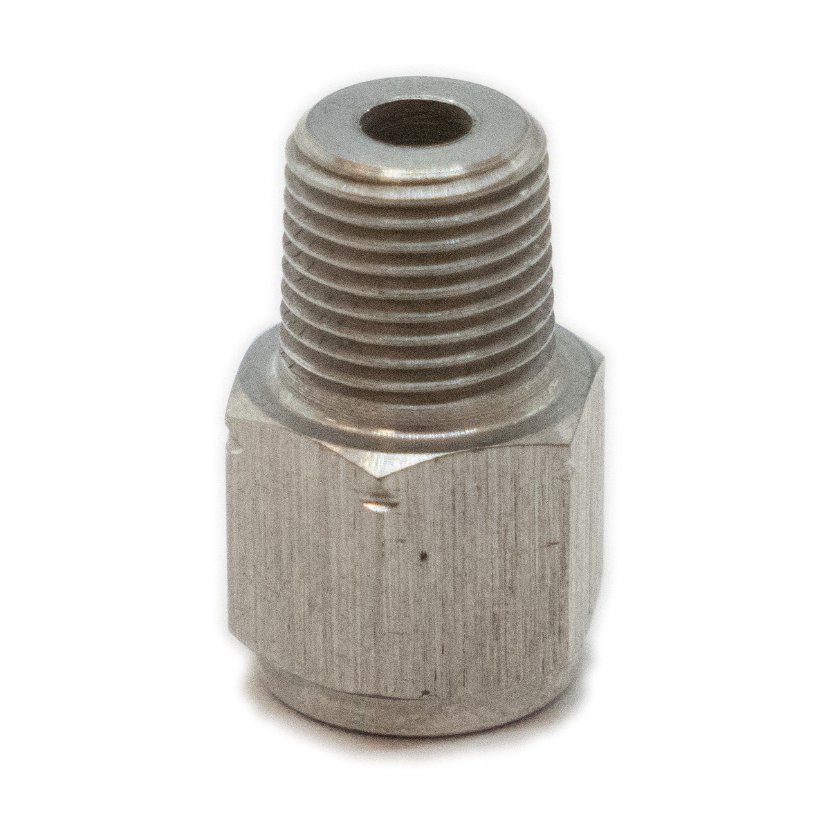 Stainless Steel thread adapter, M10 x 1 Female to 1/8 BSP Male, Adapts popular Bosch Metric Pressure Sensors to suit 1/8 BSP threaded ports.